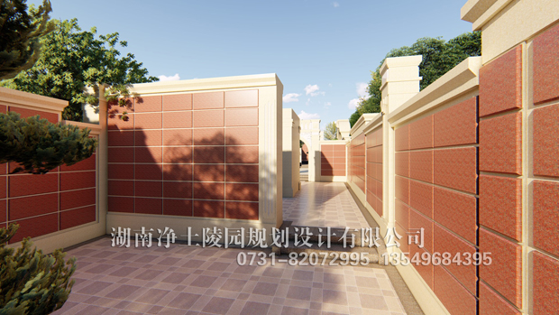 壁葬是將骨灰盒嵌在墻壁內(nèi)的喪葬方式,墻體正面分布著井字形的壁葬格,大小可放入骨灰盒。格位口用石材封死,石材外表面就當(dāng)作墓碑,刻上碑文。一堵壁葬墻可安置幾十乃至幾百個(gè)骨灰盒,存放量極大,又節(jié)約土地。壁葬的建筑形式十分豐富,有回廊式的,有亭子式的,有四合院式的還有多層式的等等。